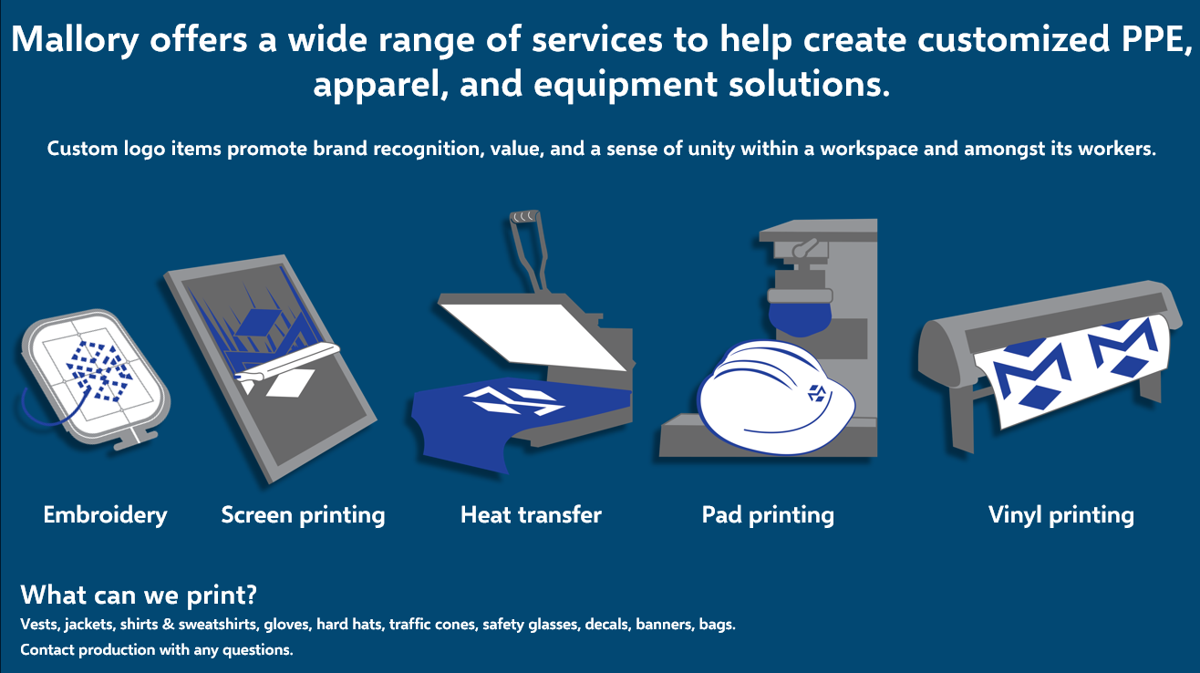 Customized printing on PPE and safety equipment for companies throughout the West Coast and beyond.