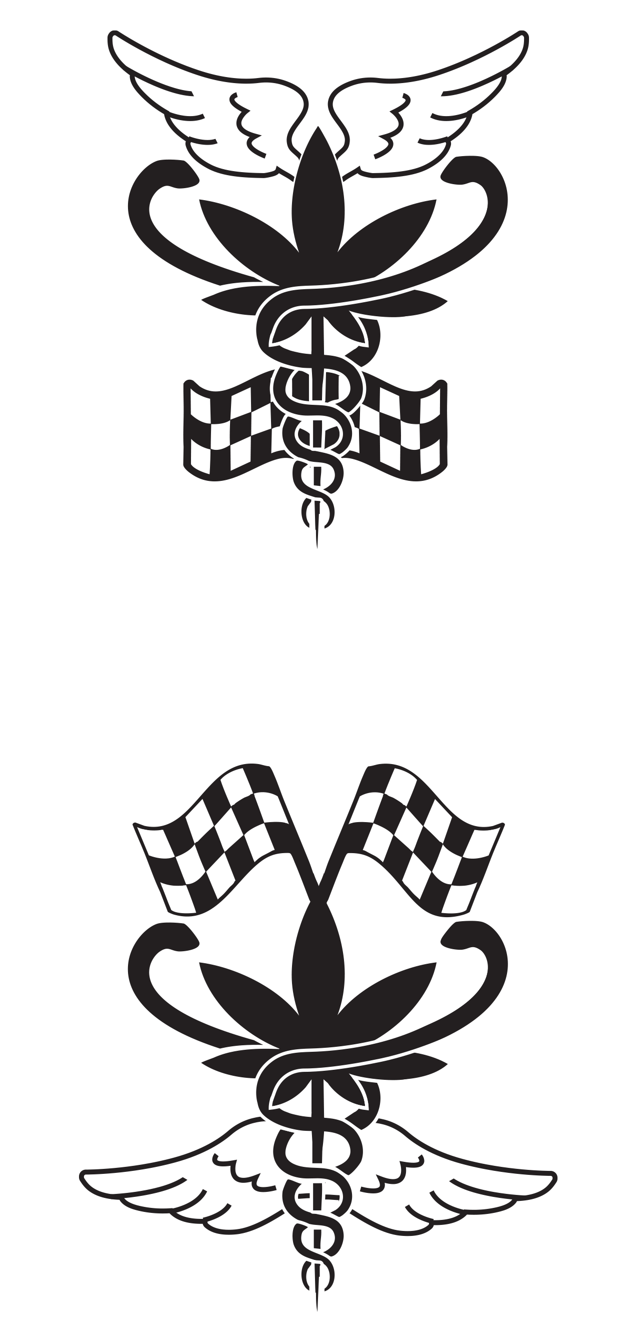 The first thing I wanted to do was isolate the caduceus in the medical design and make sure the elements within it were more visible (the cannabis leaf, the wings, the snakes, and the flags).
